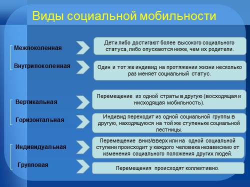 Социальная мобильность – это способность индивида изменить свой социальный статус в обществе. Существует вертикальная и горизонтальная мобильность. Вертикальная мобильность предполагает изменение статуса внутри одной социальной страты (например, повышение по карьерной лестнице), а горизонтальная мобильность – перемещение между разными социальными стратами (например, смена профессии).